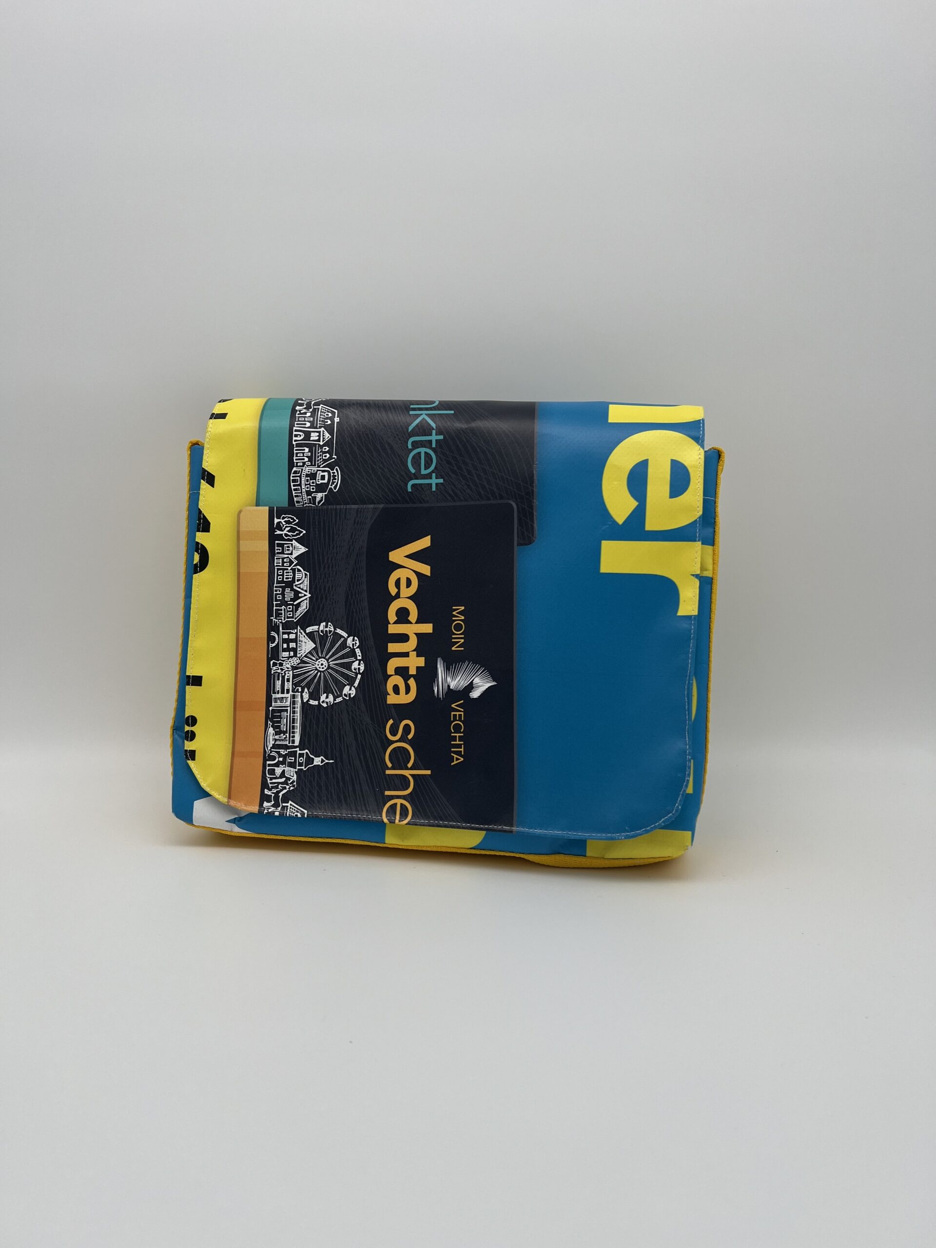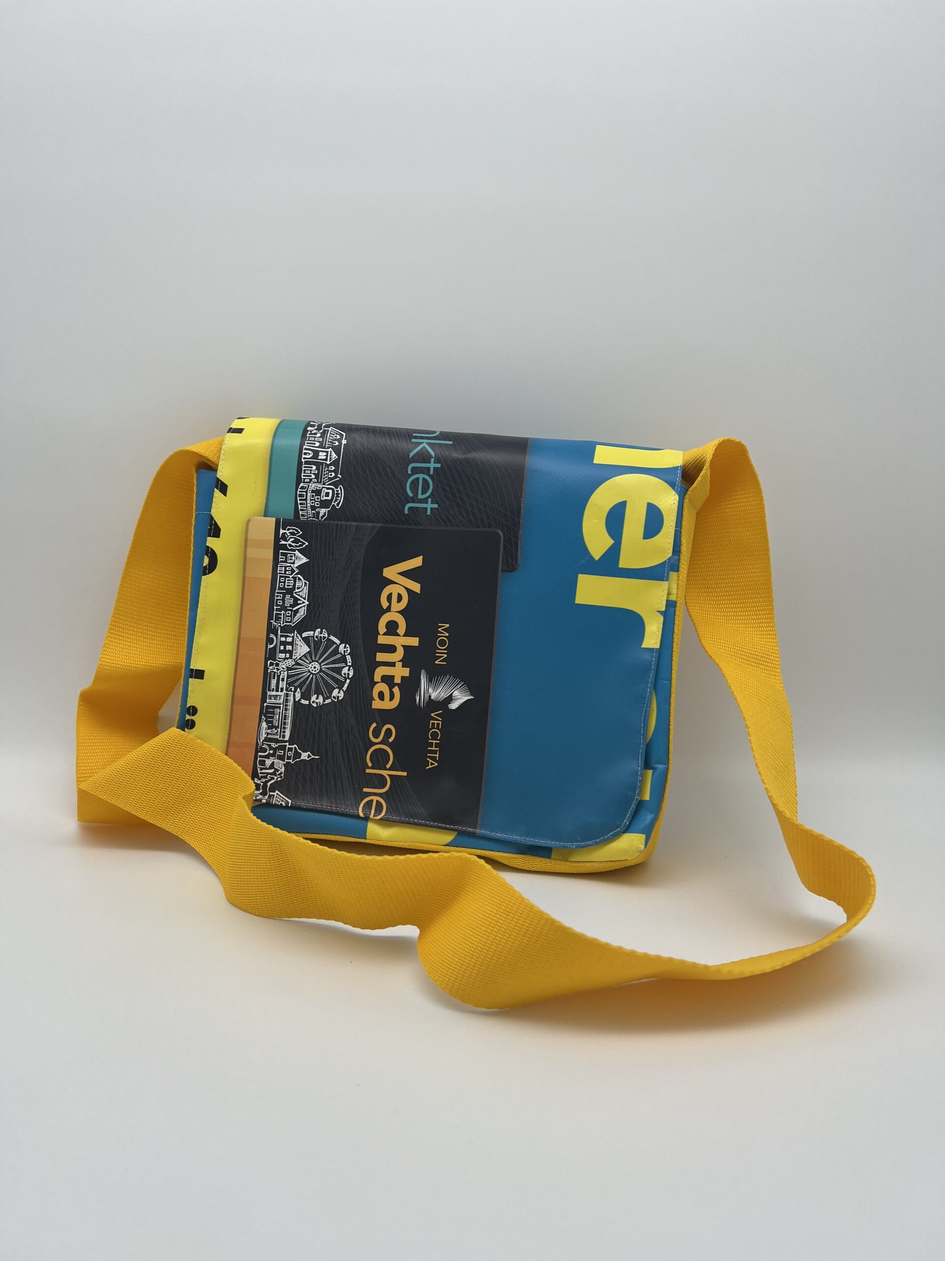 Nachhaltige Verwertung von alten Veranstaltungsbannern von MOIN VECHTA, hergestellt in der Justizvollzugsanstalt für Frauen in Vechta.